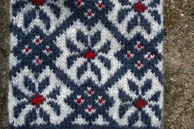 Die Konstruktion der Jacke hat mir sehr gut gefallen - nur gab es kein Lace. Fündig geworden bin ich dann im Buch "Hitomi Shida 250 knitting pattern" auf Seite 173. Meine Maschenprobe mit Nd. 3.75mm lag bei 22 M x 30 R. Außerdem wollte ich gerne die front bands gleich mit anstricken (wie beim Cardigan Strrripes von Åsa Tricosa) und 1-Maschen Knopflöcher machen. Also war ein bißchen Mathematik angesagt...